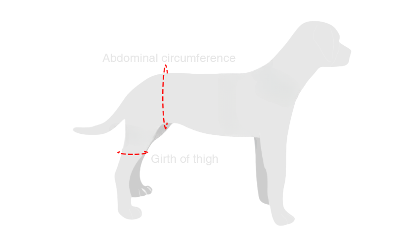 Adjust the length of the waist strap to fit the size of the dog.